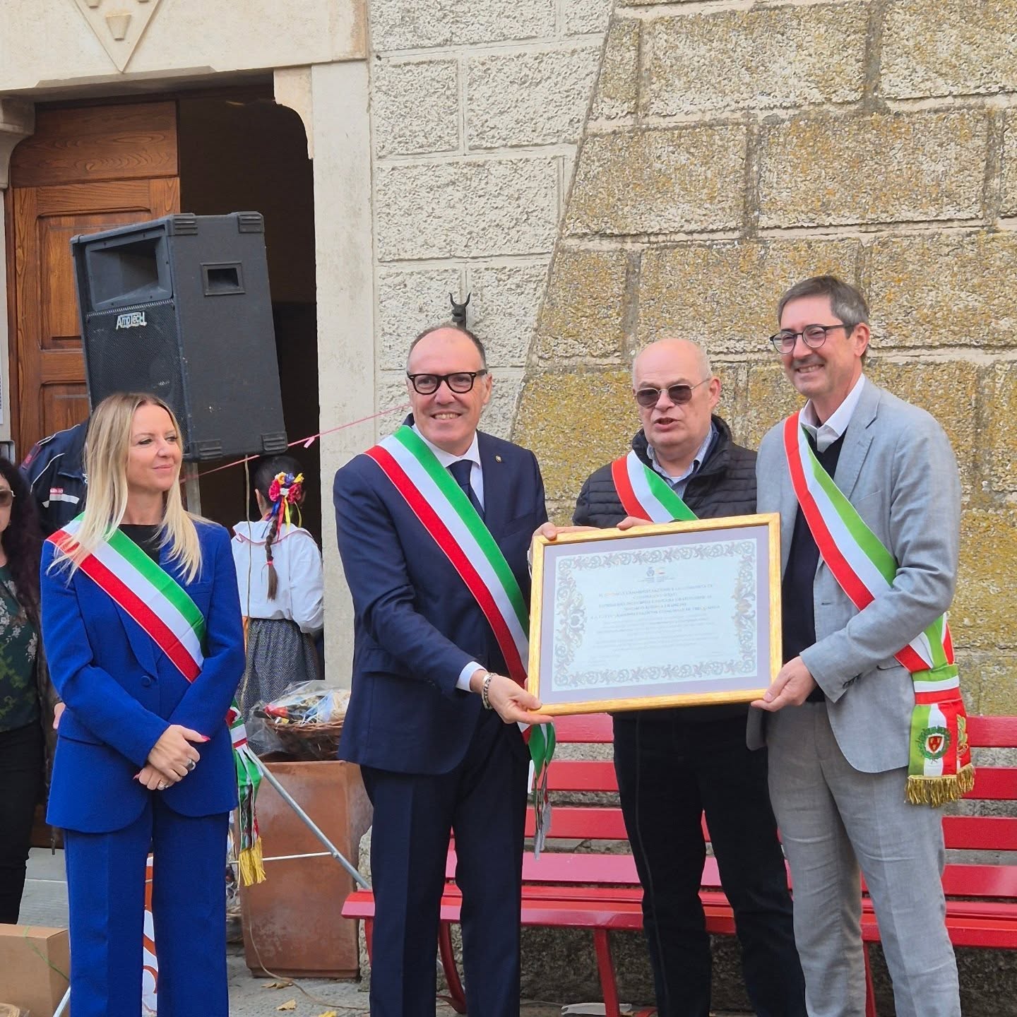 A seguire, come di consueto, i saluti istituzionali con i Comuni gemellati: il Comune di Poggio San Marcello (AN) rappresentato dal Sindaco Fabrizio Chiappa e il Comune di Marone (BS) rappresentato dall'assessora Serena Nichetti. Presente anche il Sindaco Enrico Alessandro Cavallero di Costigliole d'Asti (AT), comunità legata a quella trequandina grazie alla discendenza della famiglia Asinari, e alla recente donazione degli archivi familiari al Comune astigiano.